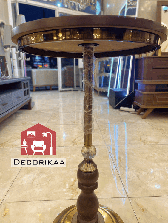 میز تلفن چوبی پایه فلزی گرد کد 01