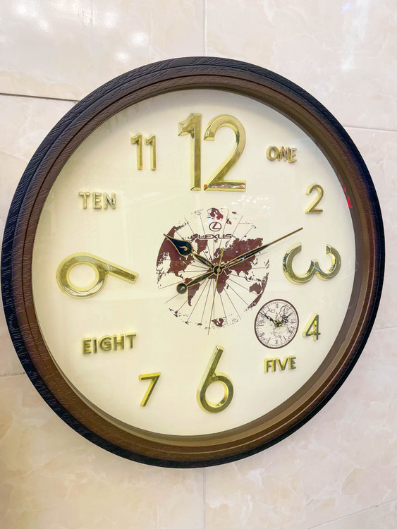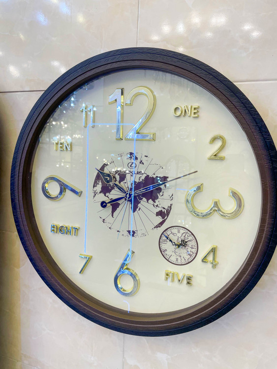 ساعت دیواری لکسوس در رنگ بندی قهوه ای با صفحه نمایش کرم رنگ عرضه شده است. در این رنگ طرحی ناقص اما جذاب از کره زمین اجرا شده که باعث زیبایی بیشتر صفحه می شود.