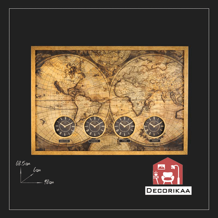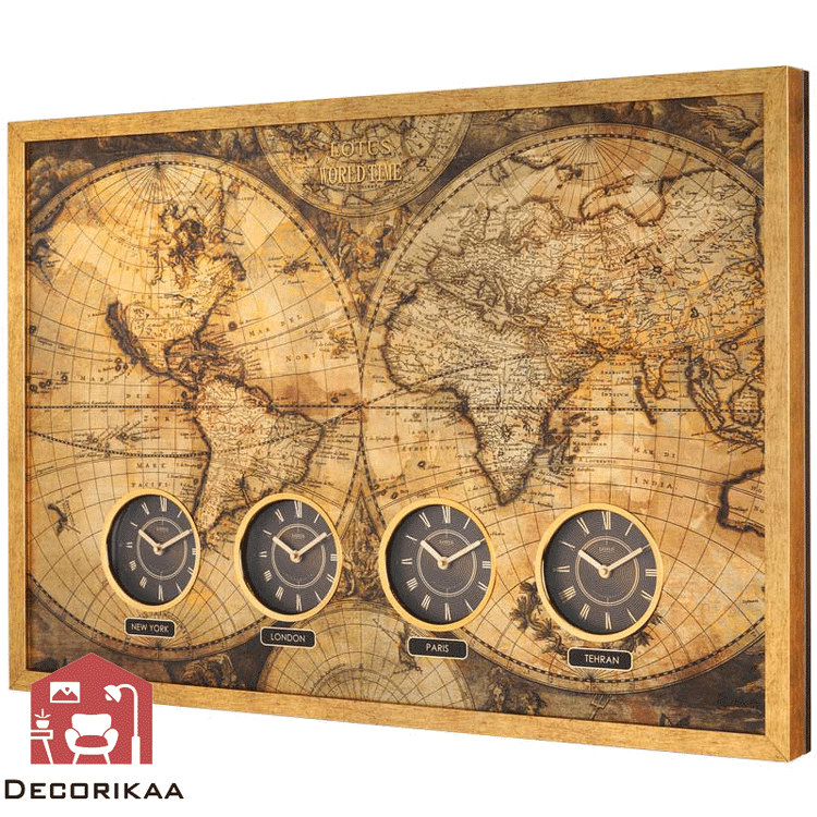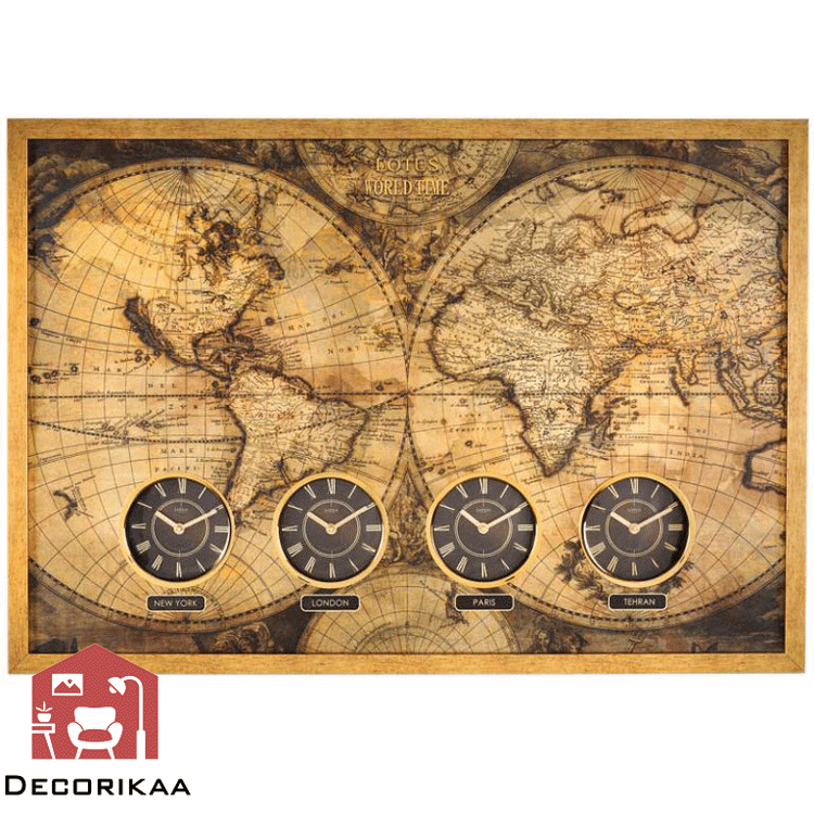 ساعت دیواری جهان نما ال ریو چهار ساعت شهر های تهران، پاریس، لندن و نیویورک را نشان می دهد.