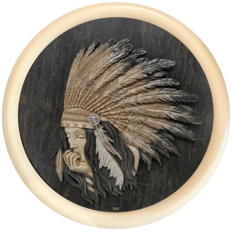 تابلو سرخپوست ماتیلدا کرم لوتوس یکی از تابلوهای متفاوت و جذاب است . مجسمه داخل تابلو از جنس پلی رزین و دست ساز است . نقاشی روی مجسمه سرخ پوست هنرمندانه و کار دست است . برای همین تابلو سرخپوست ماتیلدا کرم یک اثر هنری دست ساز است .